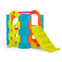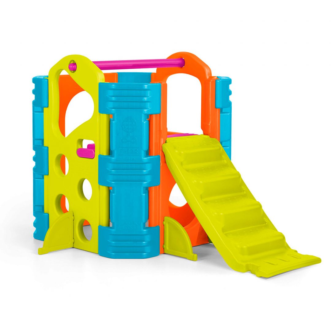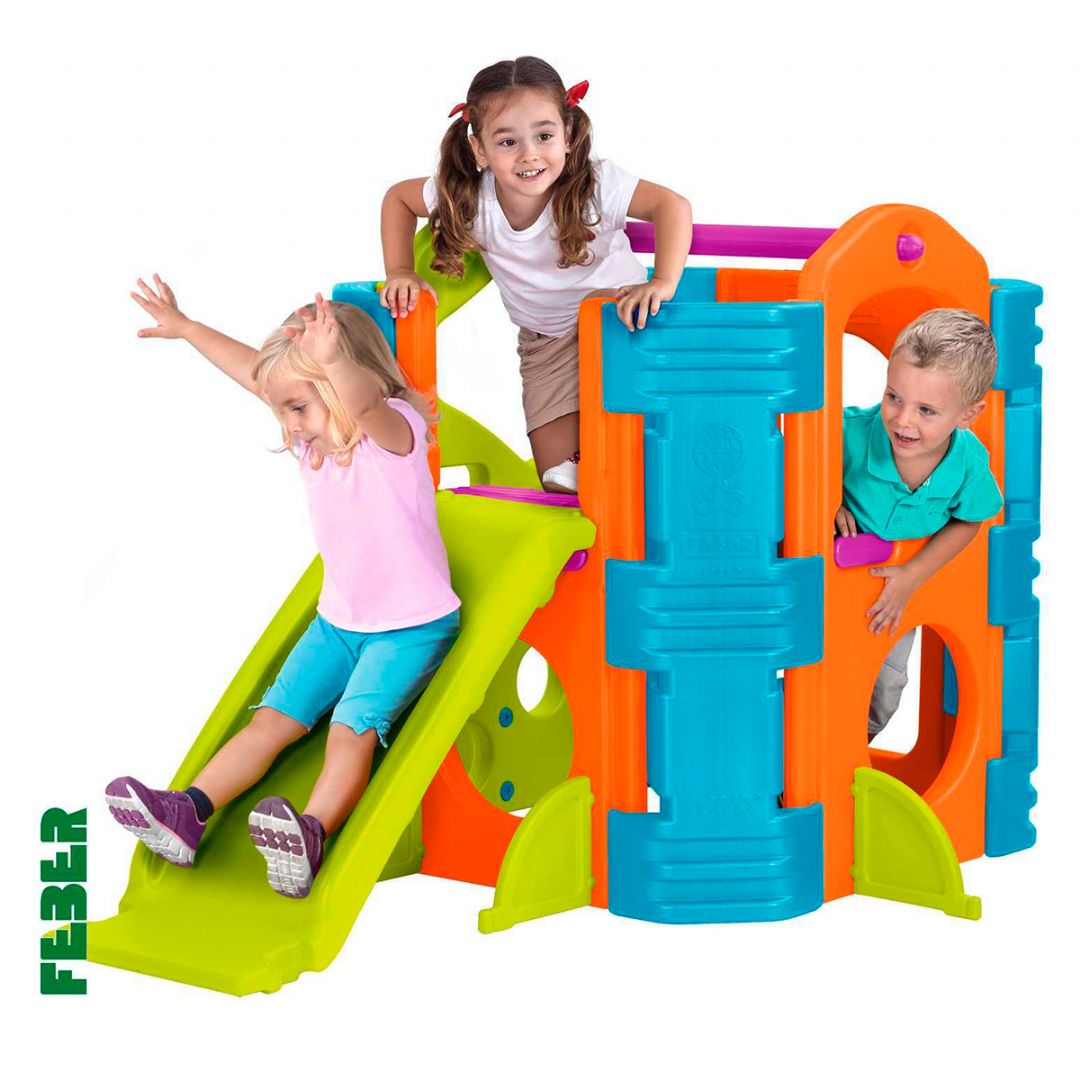 Förvandla din trädgård till en aktiv och rolig lekmiljö med detta mångsidiga lektorn från FEBER. Den kompakta aktivitetsparken kombinerar flera lekfunktioner i en design och låter barn klättra, krypa och glida – perfekt för timmar av utomhuslek.