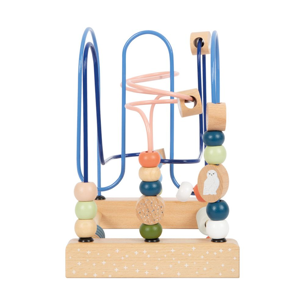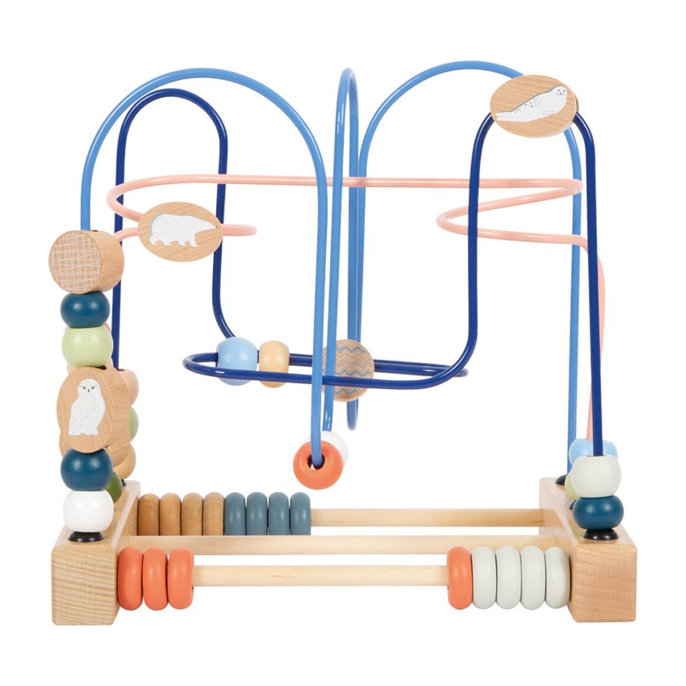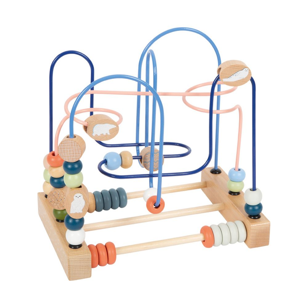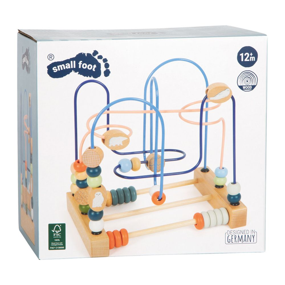Motorik blir kul i Arktis! Denna motoraktivitetsleksak, gjord av trä, erbjuder långvarig spänning eftersom träpärlor och rutschbanor med illustrationer av isbjörnen, sälen och snöugglan styrs längs de tre färgkoordinerade sammanvävda metallspåren. Detta tränar finmotorik och hand-öga-koordination på ett roligt sätt. Abacus-skenor med gängade ringar erbjuder variation och uppmuntrar till att trycka och räkna samtidigt som det förfinar det roliga med att lära. En motoriktränare designad med moderna färger som stödjer barns motoriska utveckling och gör ett fantastiskt visuellt intryck i barnrummet. Med "Arktis"-serien av motorleksaker handlar det om sex djurvänner och deras liv i den frostiga arktiska miljön: den majestätiska isbjörnen, den lekfulla valrossen, den nyfikna sälen, den smidiga snöharen, den vita snöugglan och den kloka arktisen. räv. Dessa invånare i Arktis har alla sin distinkta vita päls och är särskilt populära som unika versioner av björnen, haren, räven, ugglan och sälen som är så populära bland små barn. Denna pärllabyrint är en del av Arktis produktsortiment och gör stort intryck med sitt tydliga trämaterial, högkvalitativa illustrationer och moderna färgsättning. Det är ett måste för alla unga fans av Arktis och en nödvändighet för alla motorsportssortiment.
