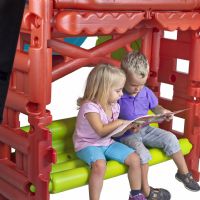 Lektornet är utformat med två stegar så att barn enkelt kan klättra upp på plattformen, varifrån de kan susa nerför rutschkanan om och om igen. Den smarta bänken kan också omvandlas till en sandlåda, vilket ger ännu fler lekmöjligheter i en produkt.