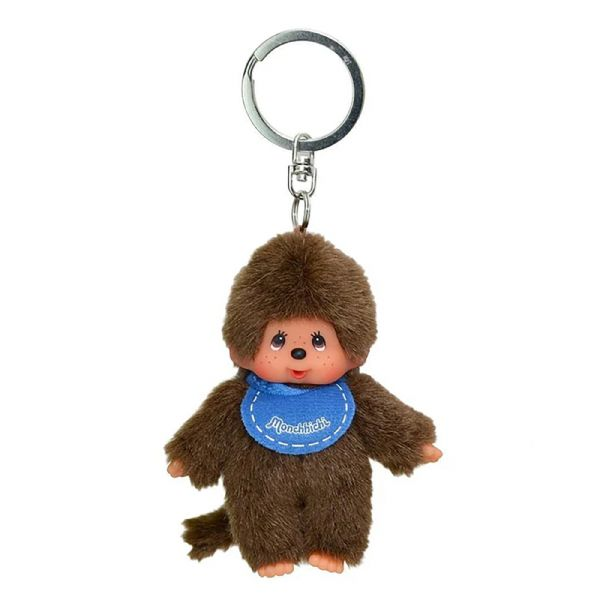 Denna söta Monchhichi-nyckelring av högkvalitativ, brun plysch är cirka 10 cm stor och har en klassisk haklapp. Den är fäst vid en nyckelring och kan därför fästas på ryggsäckar, jackor, skåp, skolväskor, handväskor och pennfodral.