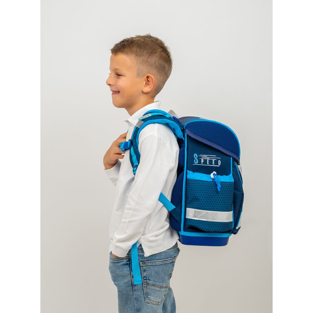 CLASSY SET skolväska set innehåller: - Skolväska - 1 rektangulär pennfodral (ofylld) - 1 (mjuk) pennfodral - Gymväska - Tidtabell - Nyckelring FUNKTIONALITET - Ergonomisk skolväska för grundskolan, 1:a - 3:e klass - Mycket lätt: väger endast 930-990 g - 1 cm x 92 g - Mått: 1 cm, x 92 vatten -avvisande - Egenskaper: Bröstband - Stängningstyp: Starkt, lättanvänt metallspänne med reflekterande element - Olika handtag: ett slitstarkt och robust tyghandtag med stoppning och ett tyghandtag för att hänga upp väskan i klassrummet - Leveransomfång: 1 skolväska, 1 rektangulär pennfodral (ofylld), 1 (mjuk) pennväska, 1 (mjuk) nyckelpenna, 1 pennfodral, 1 pennfodral