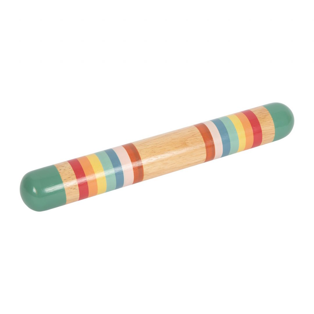 Hör du regnet? Med denna regnstav kan barn imitera ljudet av regn eller lyssna på de mjuka vattenströmmarna när som helst! Denna sensoriska leksak tränar inte bara akustisk uppfattning - den är också ett riktigt blickfång för barnrummet med sitt moderna färgschema! Även lämplig som rytminstrument, skallra eller rullande leksak för småbarn. Att röra denna regnstav orsakar ett behagligt, jämnt ljud som påminner om rinnande vatten eller regndroppar. Medicinmän i Sydamerika använder ljudet av regnmakare för att framkalla välbehövligt regn, men barn älskar den för det fascinerande, behagliga ljudet och dess lugnande effekt.