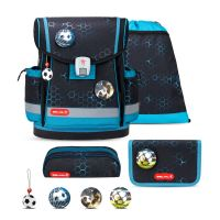 CLASSY Plus skolväska set innehåller: - skolväska - 1 rektangulärt pennfodral (ofyllt) - 1 (mjukt) pennfodral - gymväska - 3-delat patchset - nyckelring FUNKTIONALITET - Ergonomisk skolväska för grundskolan, 1 st. för 3:a - Klass mellan 6 och 9 år - Mycket lätt: väger endast 1015-1065 g - Mått: 36x32x19 cm / Volym: 19 L - Material: polyester, vattenavvisande - Egenskaper: bröstband, för DIN A4 - Stängningstyp: Fidlock magnetlås a du - Olika handtag för tyget handtag a du - Diverse handtag - Leveransomfång: 1 skolväska, 1 rektangulär pennfodral (ofylld), 1 (mjuk) pennfodral, 1 träningsväska, 3 anteckningar, 1 schema, 1 nyckelring
