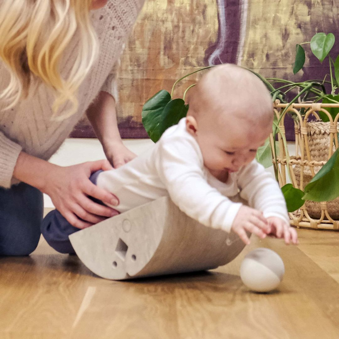 Den får även plats i magen på den stora bObles-elefanten, som sedan kan användas som gungbräda och stärka det vestibulära sinnet. En härlig och lugn aktivitet med bebis.